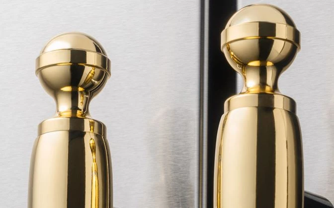 The Gold option is plated with real metal and finished to a high shine with a special treatment to protect it from the wear and tear of kitchen life. As a result, each element will continue to look perfect for many years to come. The Gold-plated finish highlights the elegant design details of your Bertazzoni Heritage Series appliances – from the control knobs of your range to the finials on the door handles of the refrigerator and dishwasher. The Collezione Metalli for the Bertazzoni Heritage Series is available in three finishes: Gold, Copper and Black Nickel. Each finish comes in two sets that you can buy with your appliance or at a later date. They are simple to install at home, with no special tools. For more details, watch our tutorial video below. This set contains 6 x handle finials in Gold to personalize one two-door Refrigerator and a Dishwasher or a French Door Refrigerator.