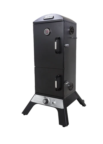 Smoke™ Gas features 770 sq. in. total cooking space, four adjustable stainless steel cooking grids, Sure-Lite™ electronic ignition system, Adjustable Roto-Draft™ cast aluminium damper system, and two rugged steel doors with gasket premium latch system.