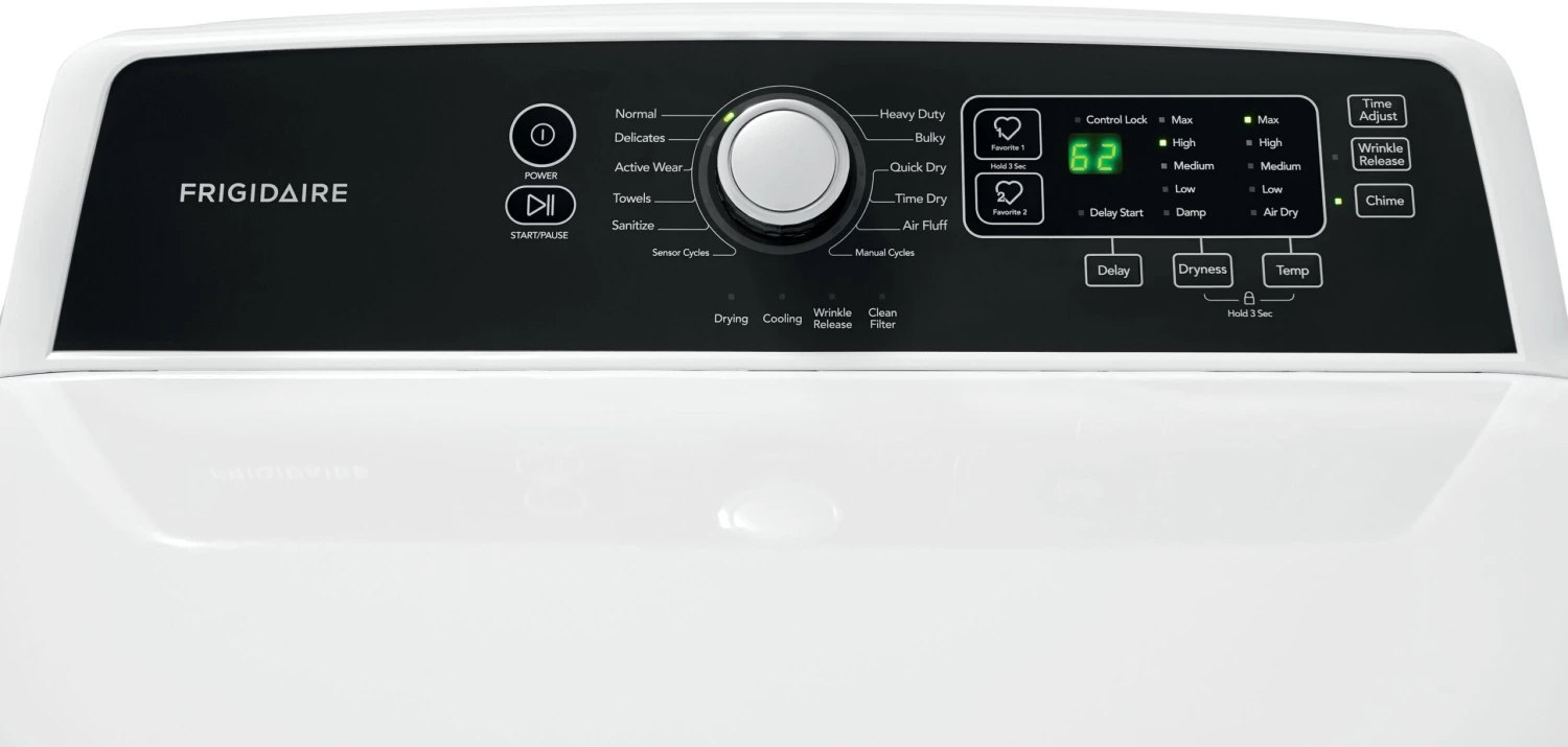 Features 10 dry cycles to meet all of your drying needs such as Bulky, Active Wear and Sanitize