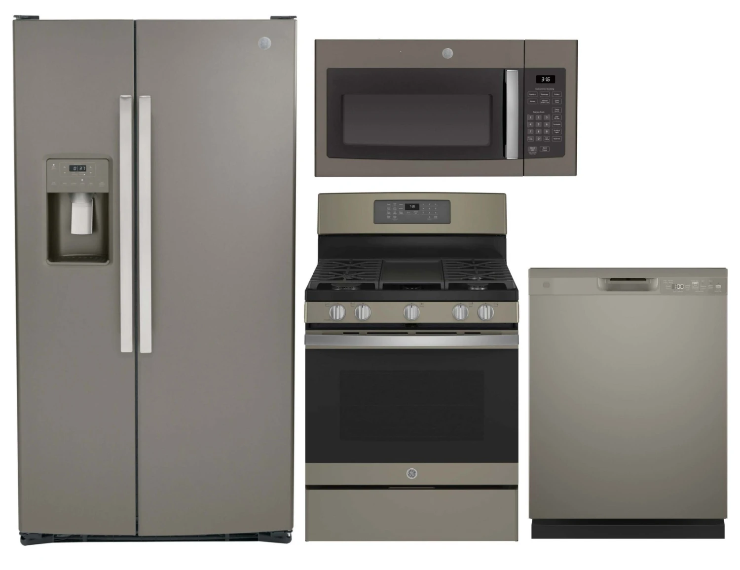 GE Kitchen 4 Piece Package 326 GYE22GYNFS-JS760SPSS-GDP630PYRFS-JVM7195SKSS