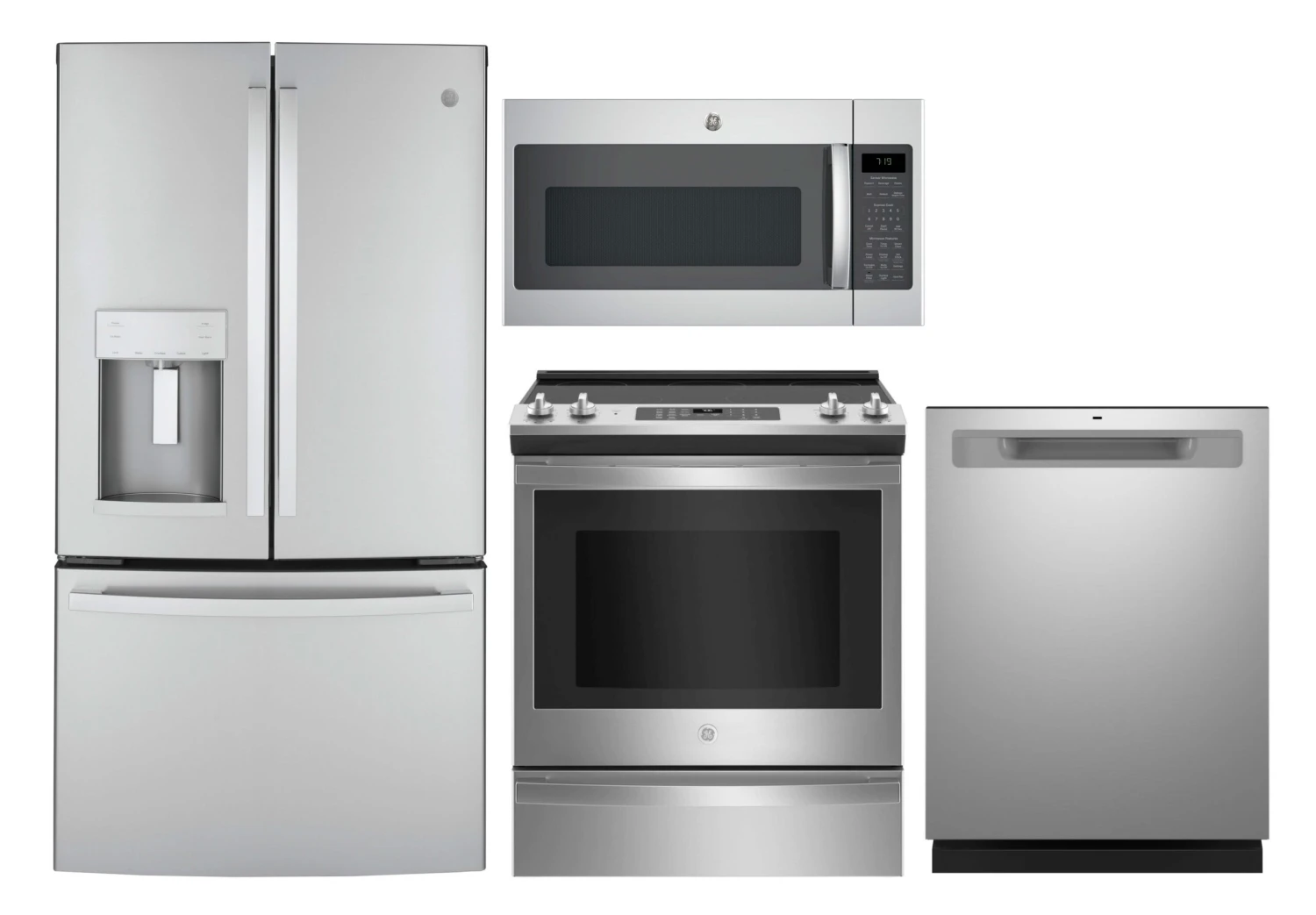 GE Kitchen 4 Piece Package 326 GYE22GYNFS-JS760SPSS-GDP630PYRFS-JVM7195SKSS