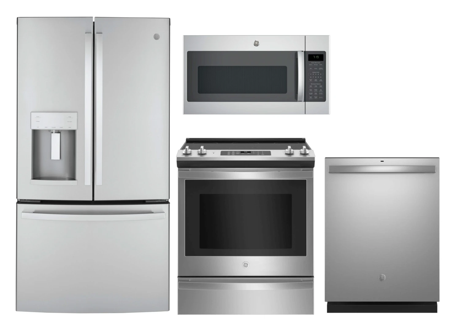 GE Kitchen 4 Piece Package 324 GFE28GYNFS-JGB735SPSS-GDP630PYRFS-JVM7195SKSS