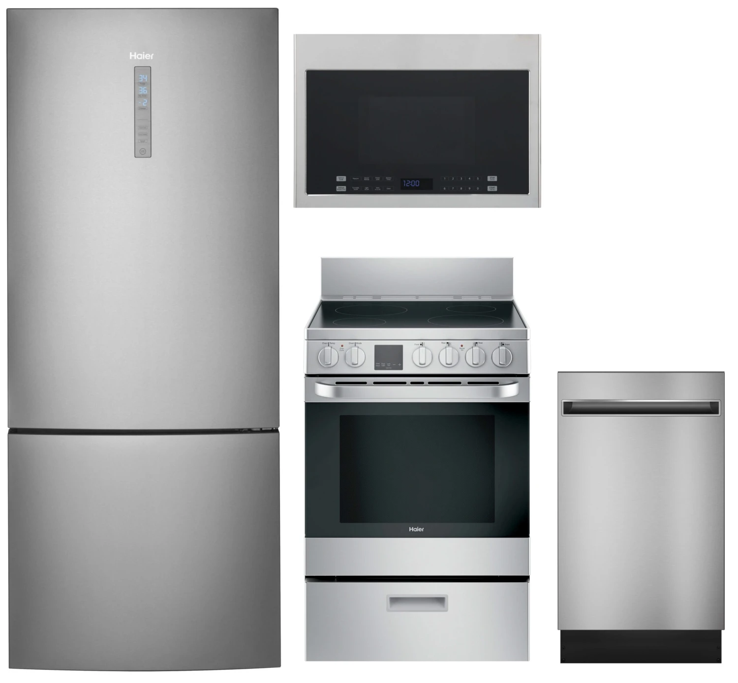 HAIER Kitchen 4 Piece Package 107 QAS740RMSS-QDT125SSLSS-HMV1472BHS-HRB15N3BGS