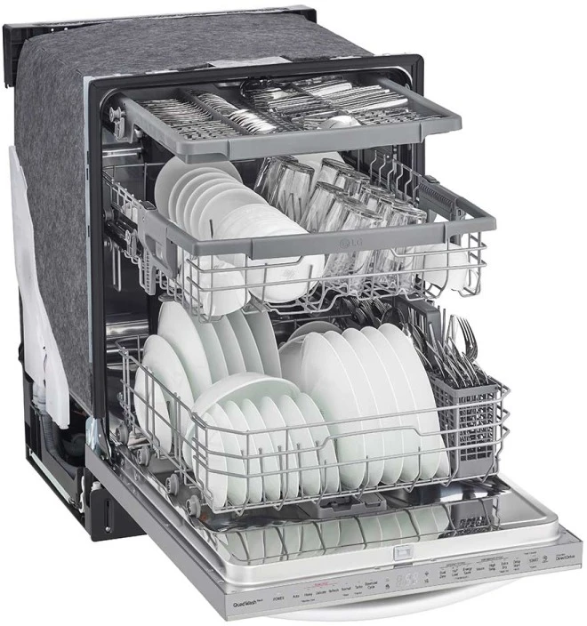 LG’s own QuadWash™ technology power cleans with 4 multi-motion spray arms so dishes get clean the first time.