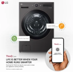 The ThinQ® app controls laundry remotely & Proactive Customer Care sends maintenance tips & alerts.
