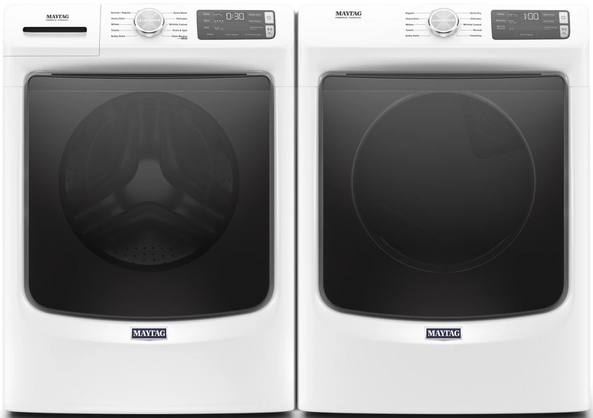 The quick wash cycle cleans small, lightly soiled loads in 15 minutes with extra high spin speeds, pairing nicely with the quick dry cycle on matching Maytag® dryers to get your clothes ready in no time.