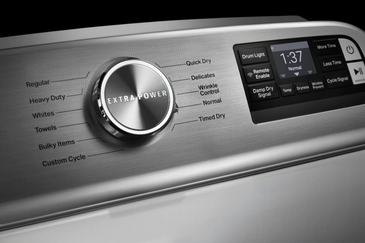 The Extra Power button boosts drying power on any cycle by extending time, heat and tumbling. One push helps prevent underdrying by getting thick fabrics, pockets and seams drier the first time.