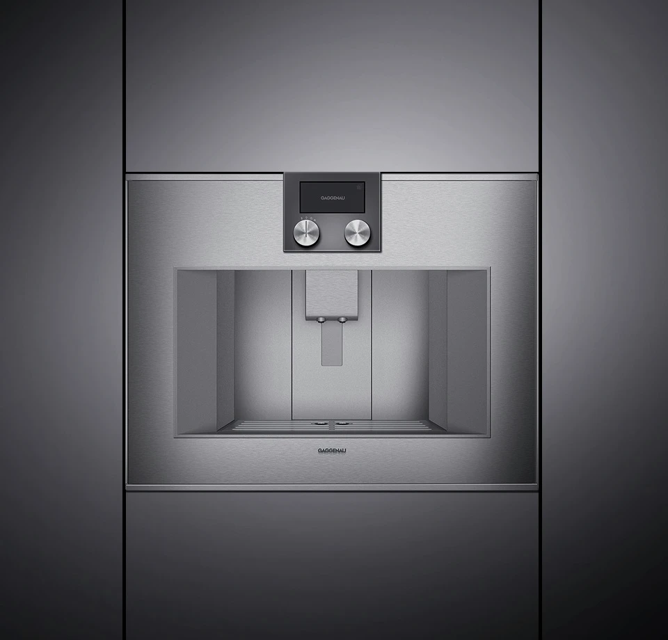 Easy access to water tank, milk and coffee bean container behind the door.