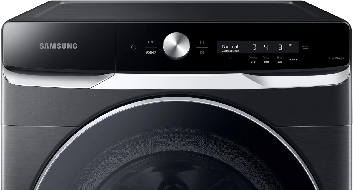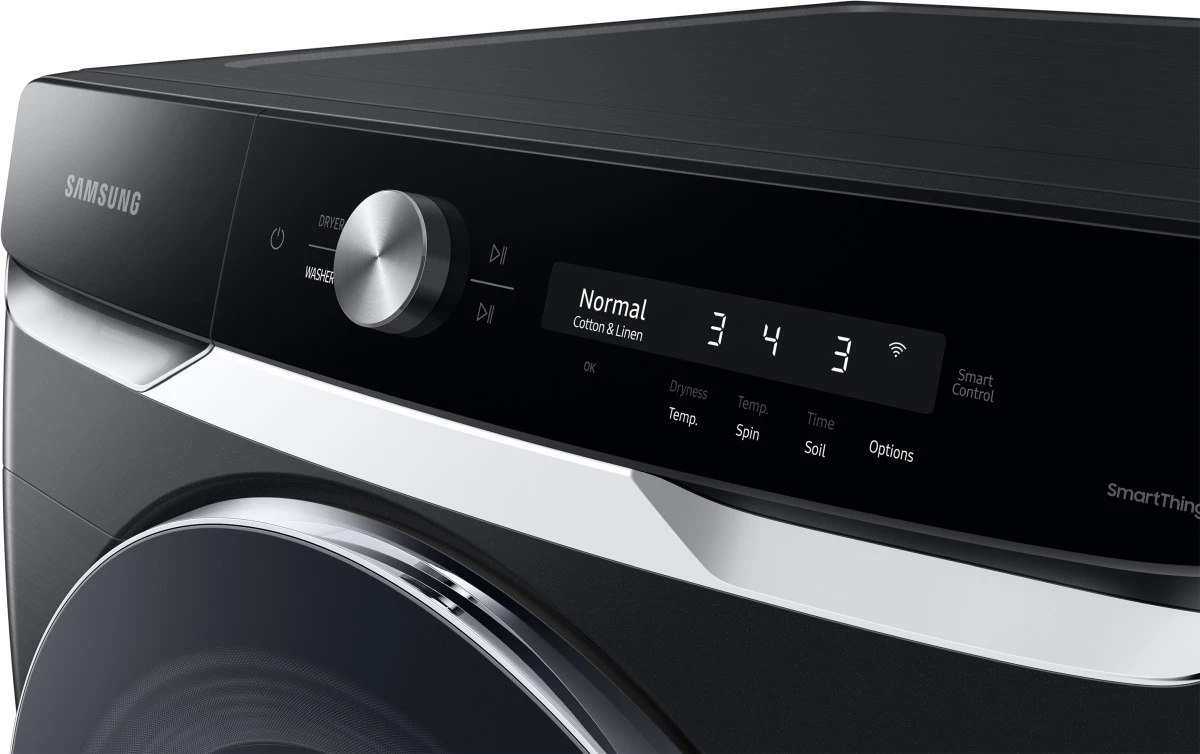 Samsung’s simple to use, AI Powered Smart Dial learns and recommends your favorite wash cycles and allows you to customize your cycle list, change the displayed language, and operate the dryer right from the washer when the units are stacked.