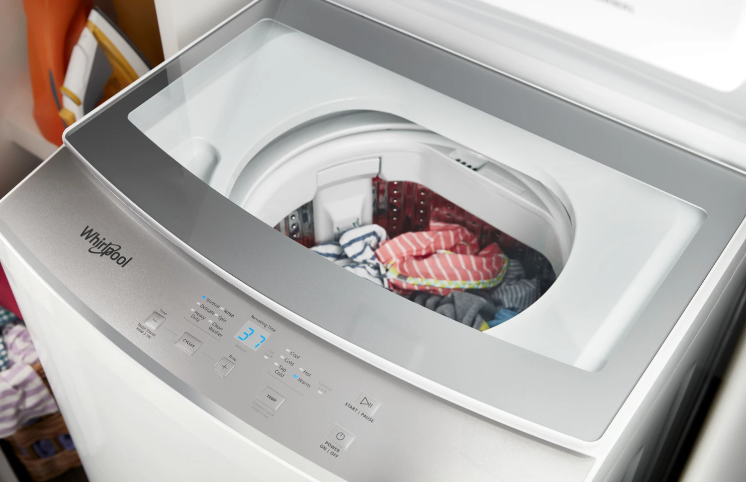 - Enjoy a clean, streamlined look with the see-through lid with soft close hinge that lets you easily check on your load while it’s washing.