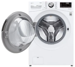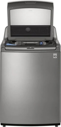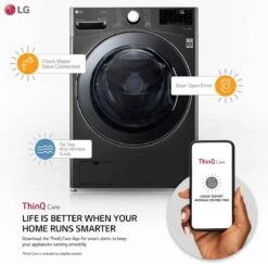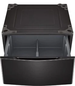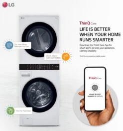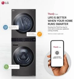 Open Box **Scratch And Dent** LG 5.0 Cu. Ft. Washer, 7.4 Cu. Ft. Dryer Black Steel Stack Laundry