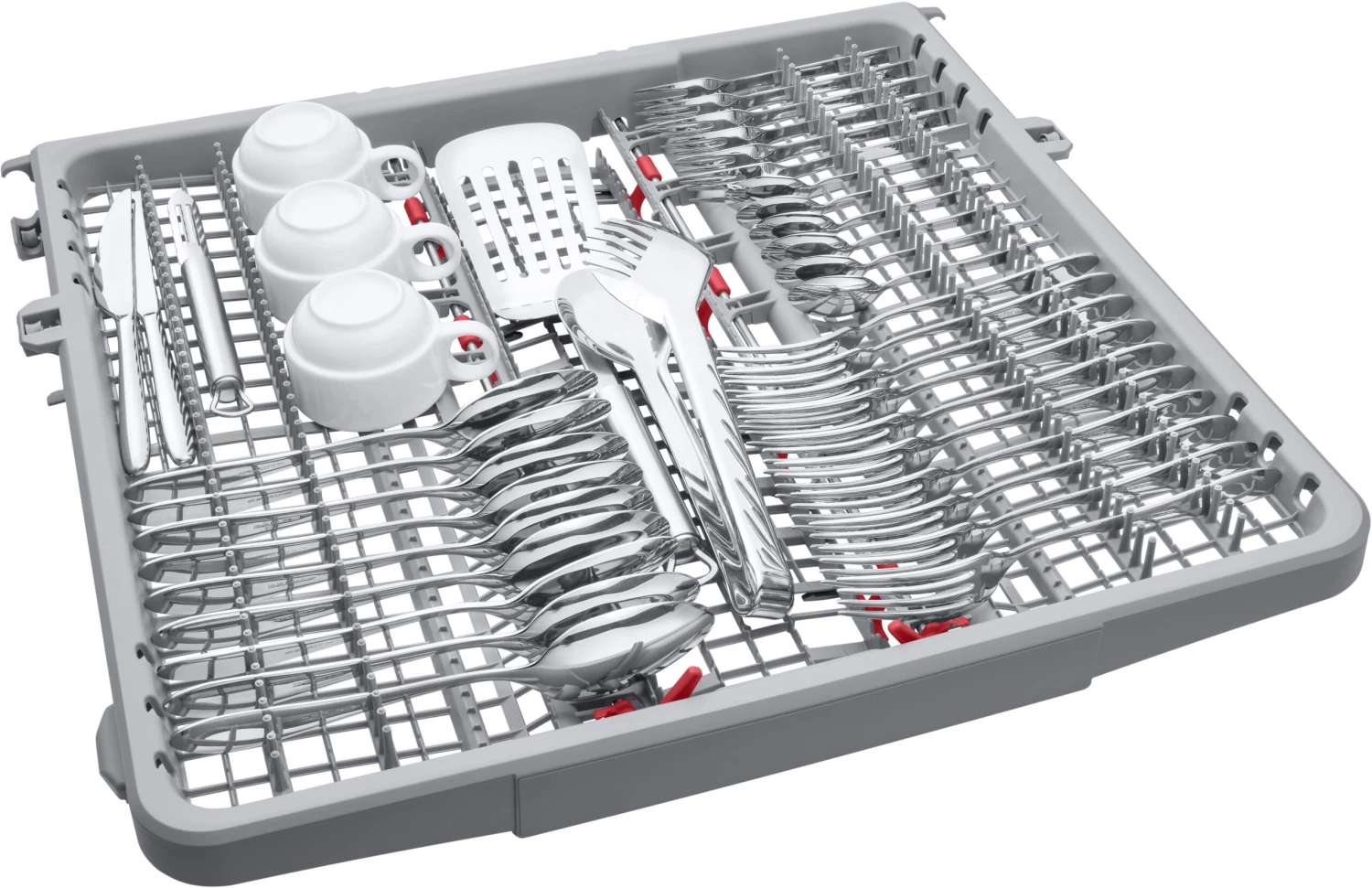 The flexible 3rd rack provides extra space to load silverware. Use adjustable section for oversized utensils.
