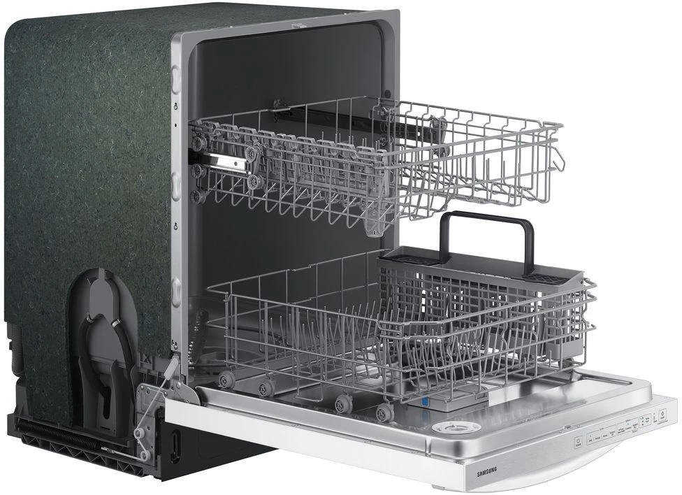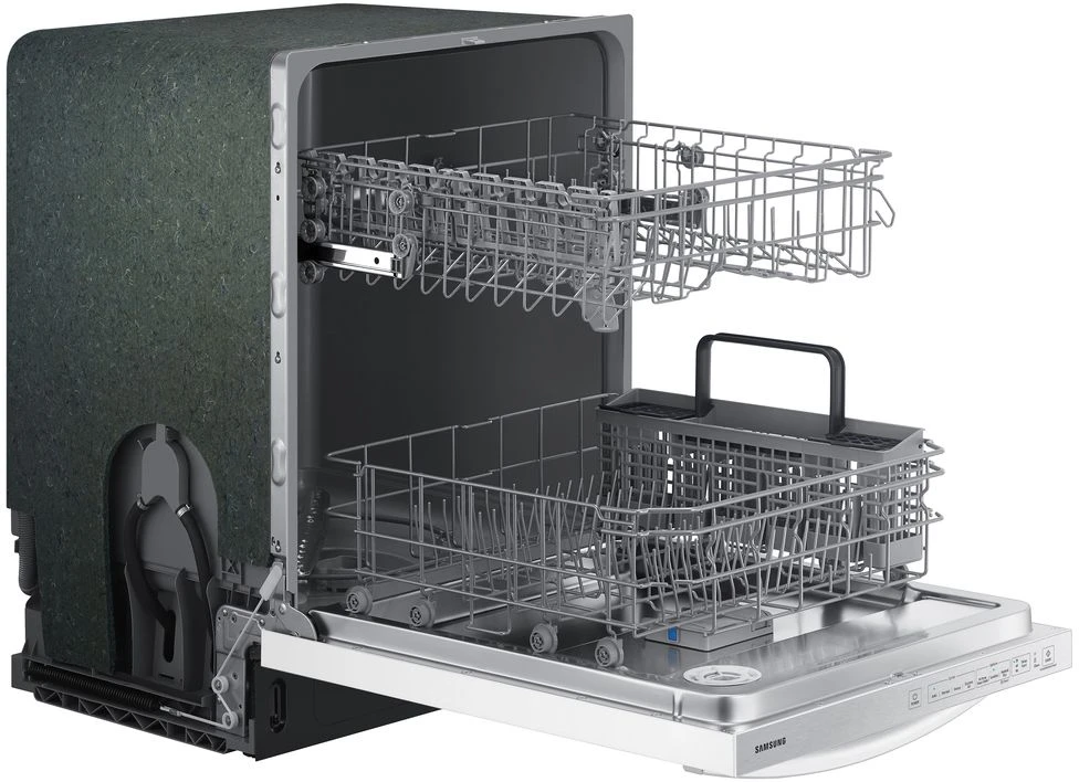 Creates much less noise as its Hybrid Tub, with a stainless steel inner door, absorbs much of the sound and vibration. At 55 decibels the noise it creates is less than a normal conversation, so it won’t disturb you.