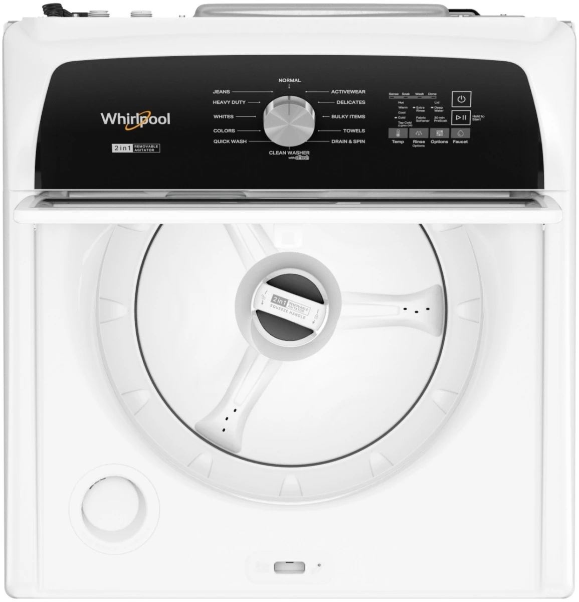 Easily remove the industry-first 2 in 1 removable agitator when your load needs a little more space to move. Impeller wash action cleans by rubbing the fabrics against each other, while the design of the impeller’s surface helps drive clothes from the outer rim to the center, where the deepest cleaning happens.